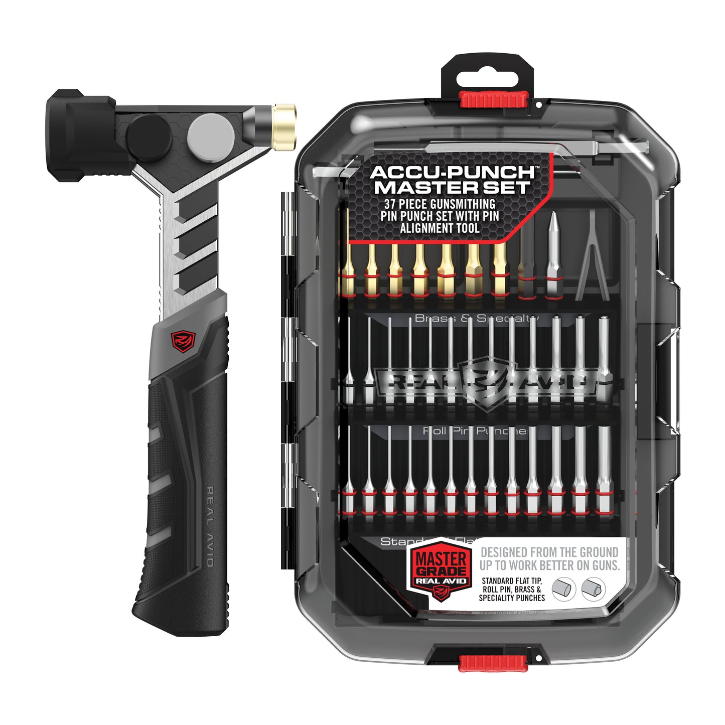 Achieve unmatched precision and versatility with the Armorer’s Master Hammer™ and Accu-Punch® Master Set. This professional-grade combo features a forged steel hammer with interchangeable heads and an ergonomic design for controlled strikes, alongside a comprehensive 37-piece punch set tailored for firearm assembly and maintenance. Both tools are built to deliver efficiency, durability, and accuracy for gunsmiths and DIY enthusiasts alike.