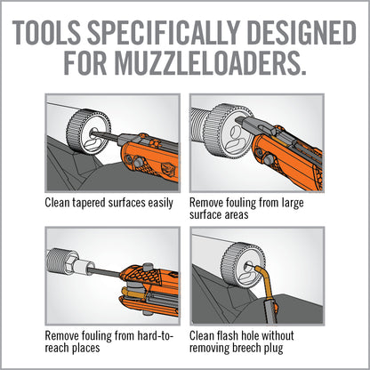 • Features a Breech Plug 4-in-1Scraper for cleaning tapered surfaces and flash holes.