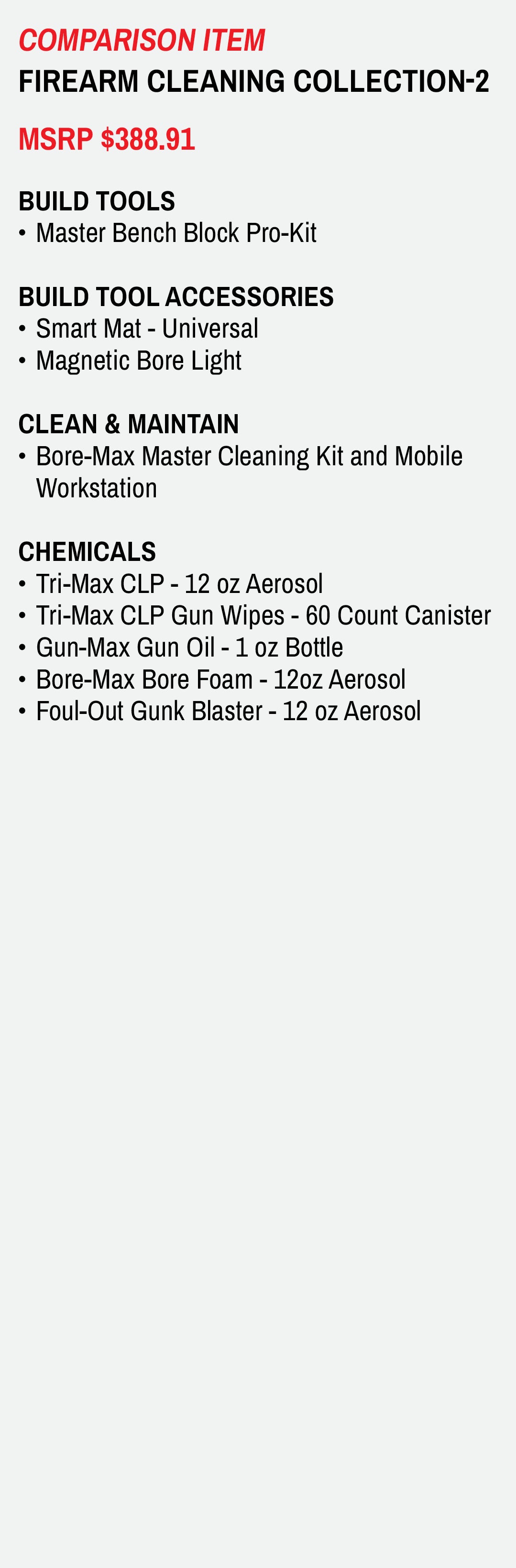 Our Master Firearm Collections offer a comprehensive selection of professional-grade tools and products designed to meet the needs of both casual shooters and serious gun enthusiasts. These carefully curated collections provide everything you need to clean, maintain, and customize your firearms with precision and ease.