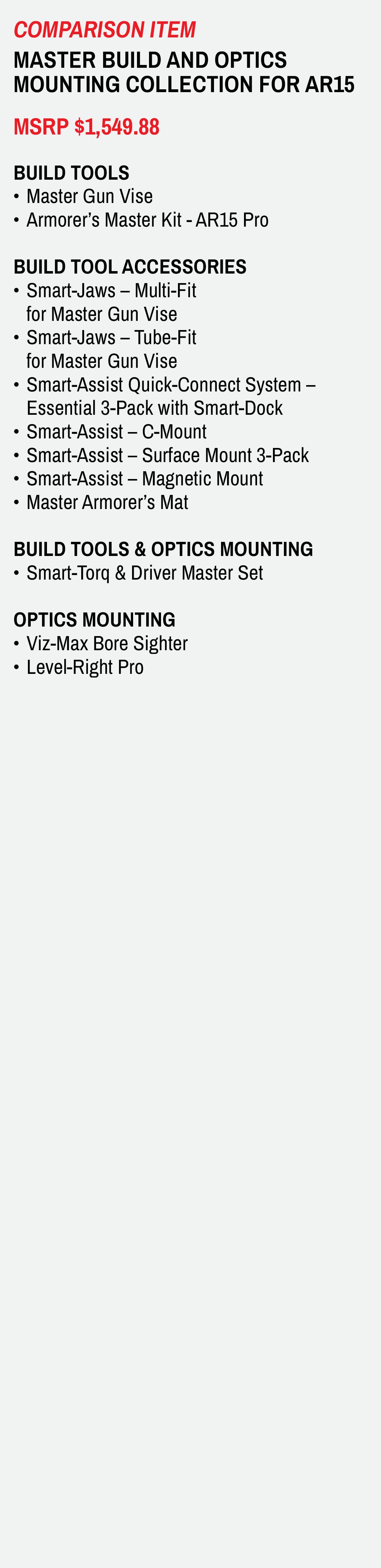 MASTER ARMORER’S BUILD, MAINTAIN AND OPTICS MOUNTING COLLECTION FOR AR15