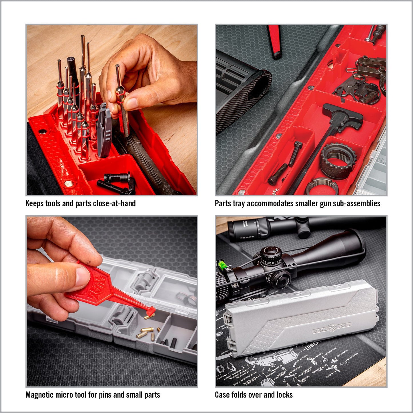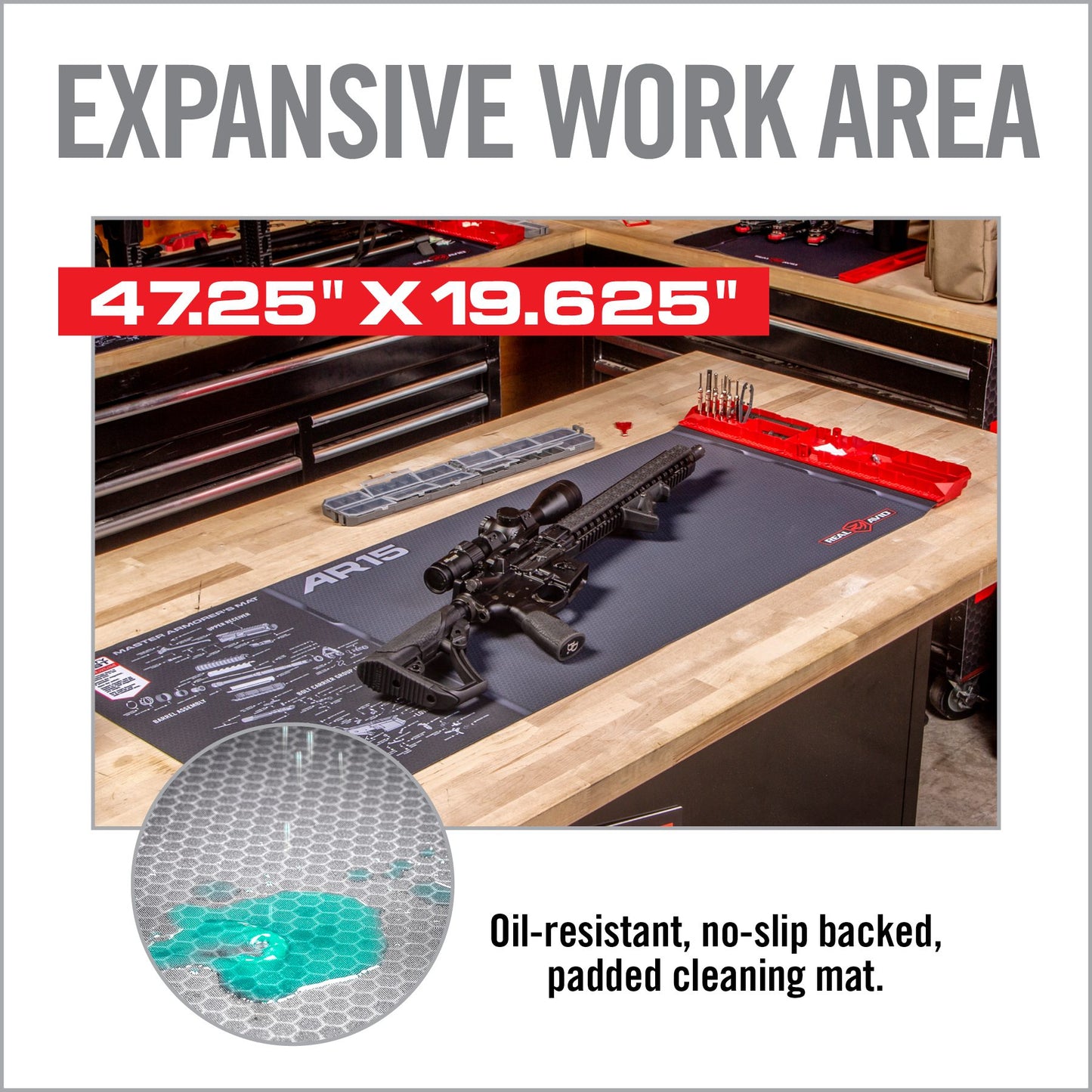 The Master Armorer's Mat is the ultimate solution for your gun building project. This massive mat will protect your large gun parts while the added organization trays will hold every medium and small component, making sure you don't lose any parts in the process. This isn't just a mat, it's the future of gun building.