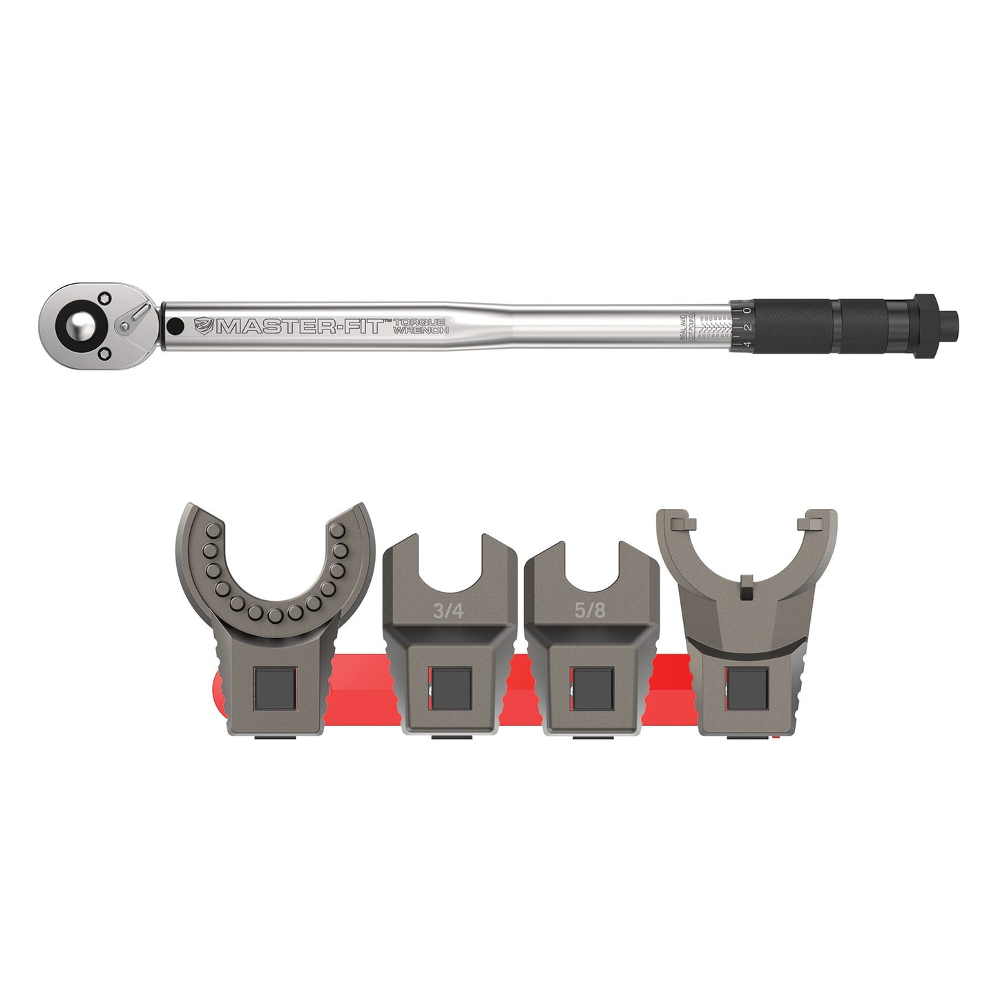 - The heavy-duty Master-Fit Torque Wrench boasts a 10 to 150 foot-pound range for various torque settings and requirements.