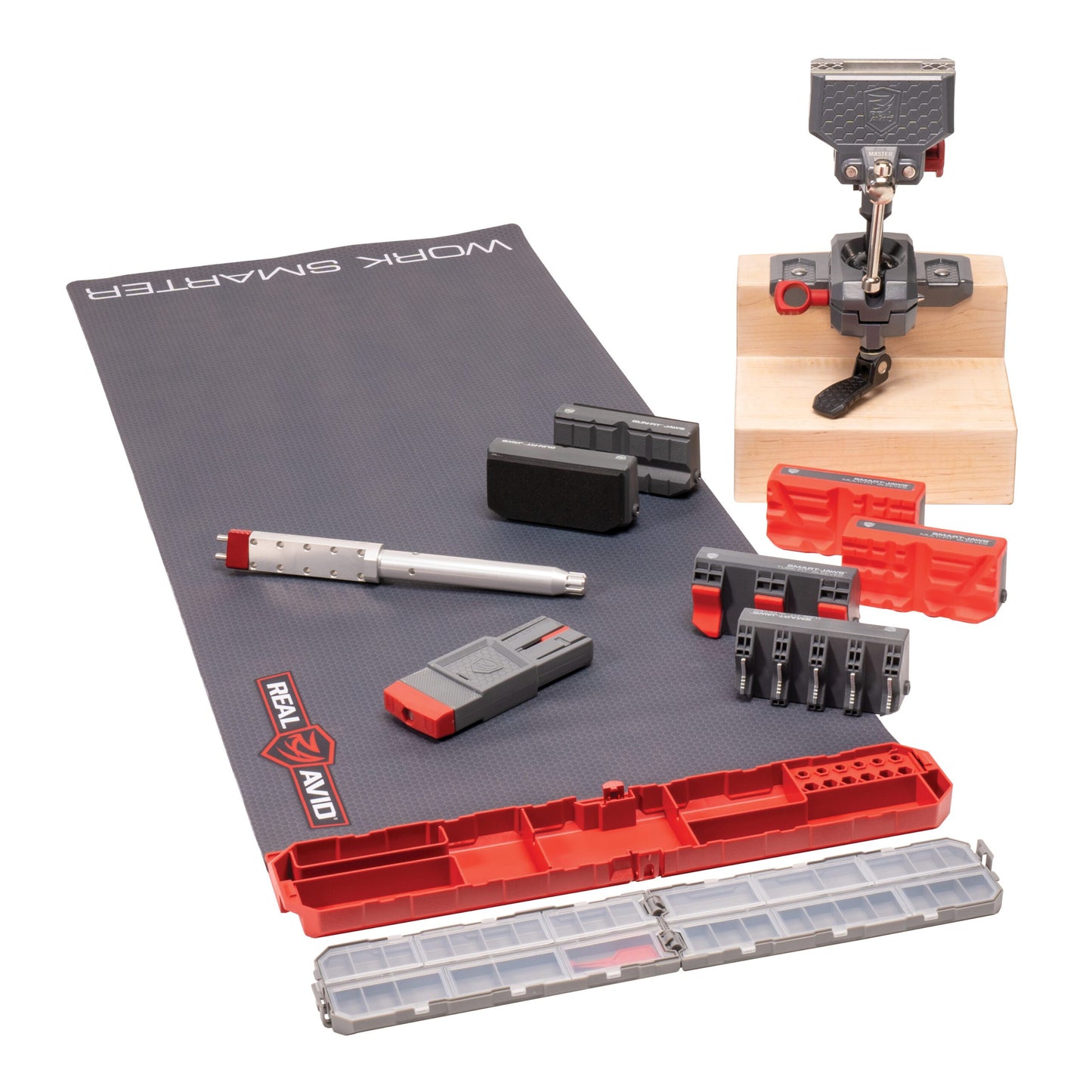 Take advantage of this exclusive deal and upgrade your Gun DIY experience. This collection, anchored by the revolutionary Master Gun Vise, sets a new standard in precision, versatility and efficiency for AR15 builders. With its groundbreaking design, this vise enables optimal AR15 positioning thanks to its 360-degree articulation and 8-position locking ball and socket mechanism. This adaptability ensures that every task, from cleaning to complex modifications, is executed with unparalleled precision and ease. This collection merges the advanced functionality of the Master Gun Vise with the precision of Smart-Jaws™ — Multi-Fit™ Vise Jaws, Tube-Fit™ Vise Jaws, the innovation of the Lug-Lok Upper Vise Block™ - AR15 and the versatility of the Smart-Fit® AR15 Vise Block, complemented by the all-in-one supersized project mat and tool organizer the Smart Mat® XL Universal. Designed to cater to every aspect of firearm care, from intricate repairs to comprehensive customizations, this collection ensures that enthusiasts and DIY gunsmiths alike have access to professional-grade tools for achieving exceptional results in their projects.