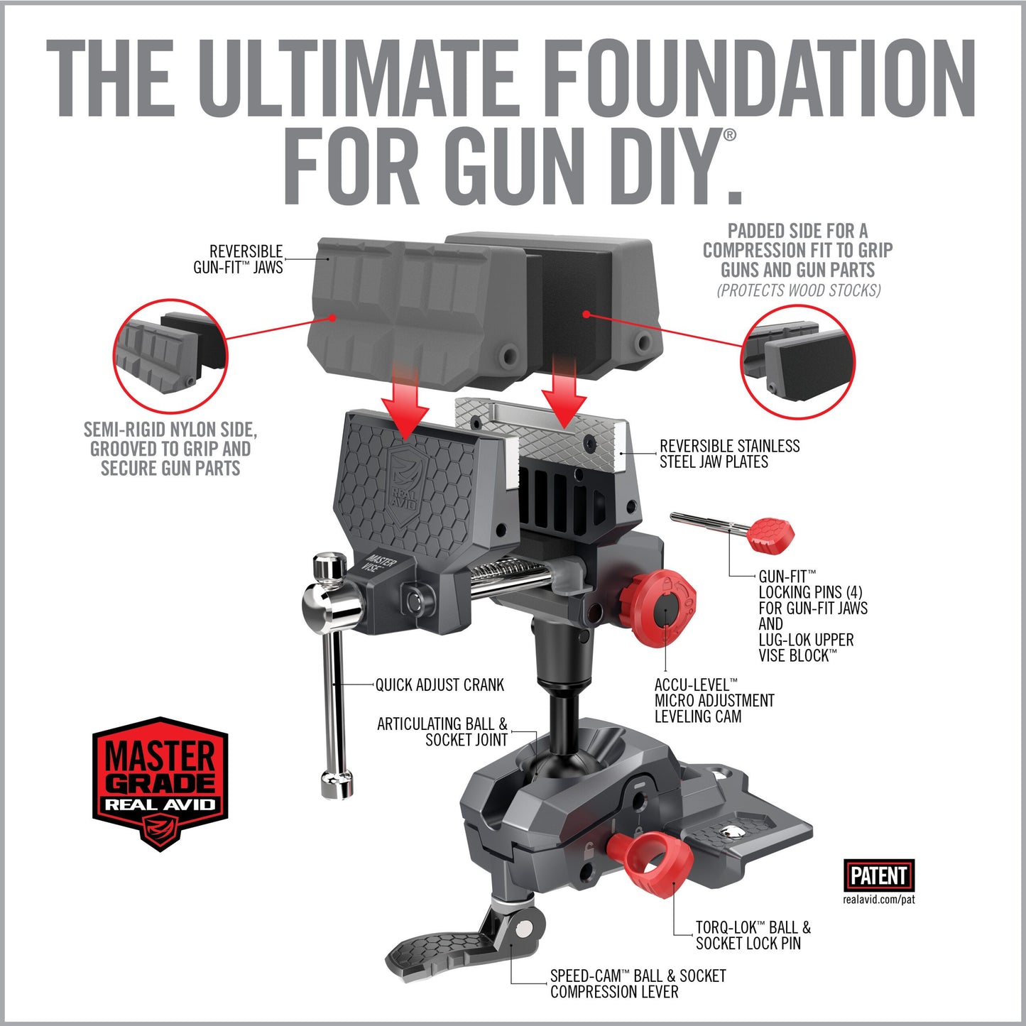 - Master Gun Vise® designed for unparalleled firearm maintenance, customization and repair with articulating 360-degree rotation.